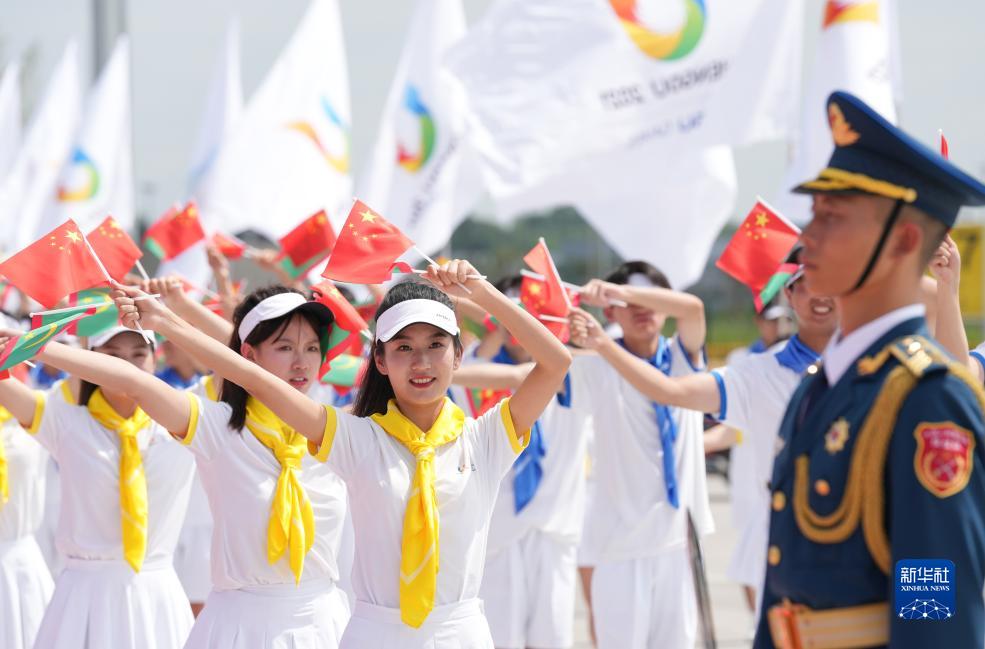 7月28日上午,來華出席成都大運會開幕式并訪問的毛里塔尼亞總統加茲瓦尼抵達四川省成都市。這是歡迎儀式現場。