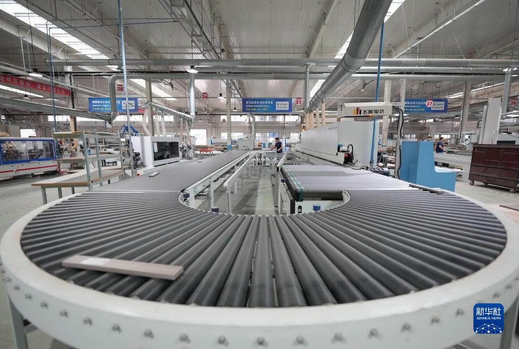 7月28日,工人在河北省唐山市蘆臺經濟開發區一家具企業的生產車間工作。
