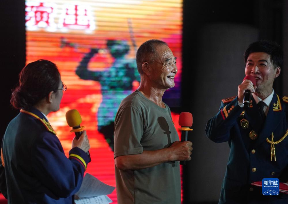 張勇(中)在老戰士后代慶祝八一建軍節聯歡會上演唱《我是一個兵》(7月26日攝)。