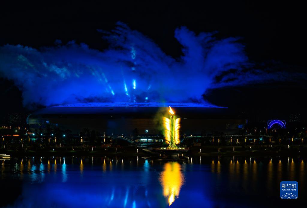 這是7月28日拍攝的成都大運會主火炬。