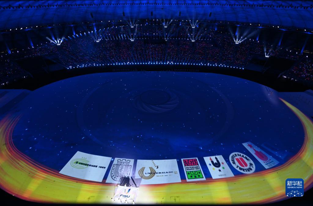 7月28日,國際大學生體育聯合會會旗在開幕式上入場。