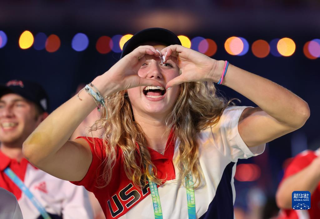 7月28日,美國大學生體育代表團在開幕式上入場。