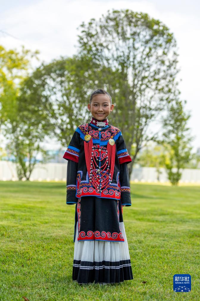 7月23日,吉合拉作在成都大運會開幕式彩排之前留影。新華社記者 沈伯韓 攝