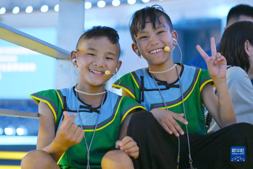 7月16日,在成都大運會開幕式彩排現場,吉子醫生(左)和吉朵史拉在候場。新華社記者 胥冰潔 攝