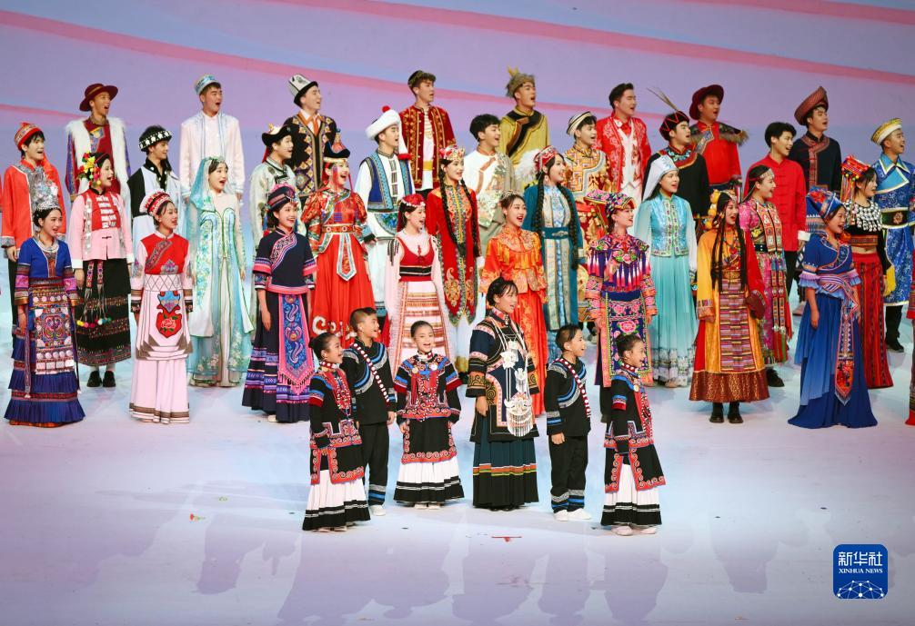 7月28日,吉好有果(前右三)在開幕式上表演。新華社記者吳剛攝