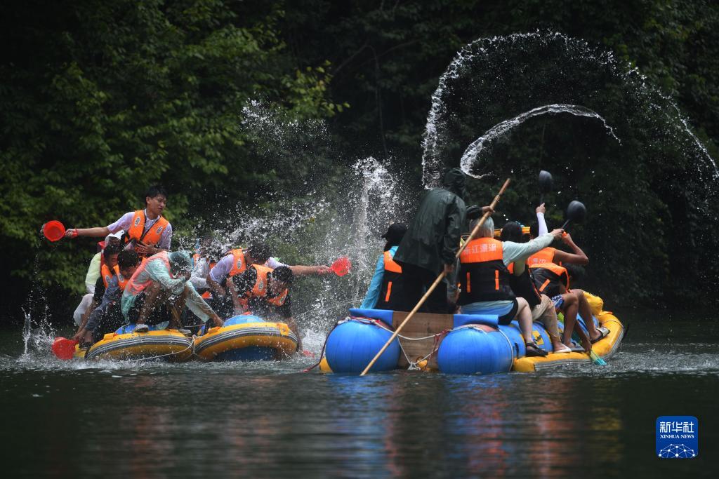 連日來,湖南多地持續高溫,眾多市民和游客戲水消暑,享受親水活動帶來的清涼和樂趣。