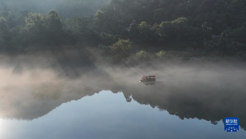 7月26日,游客在湖南省資興市小東江上乘船游覽(無人機照片)。