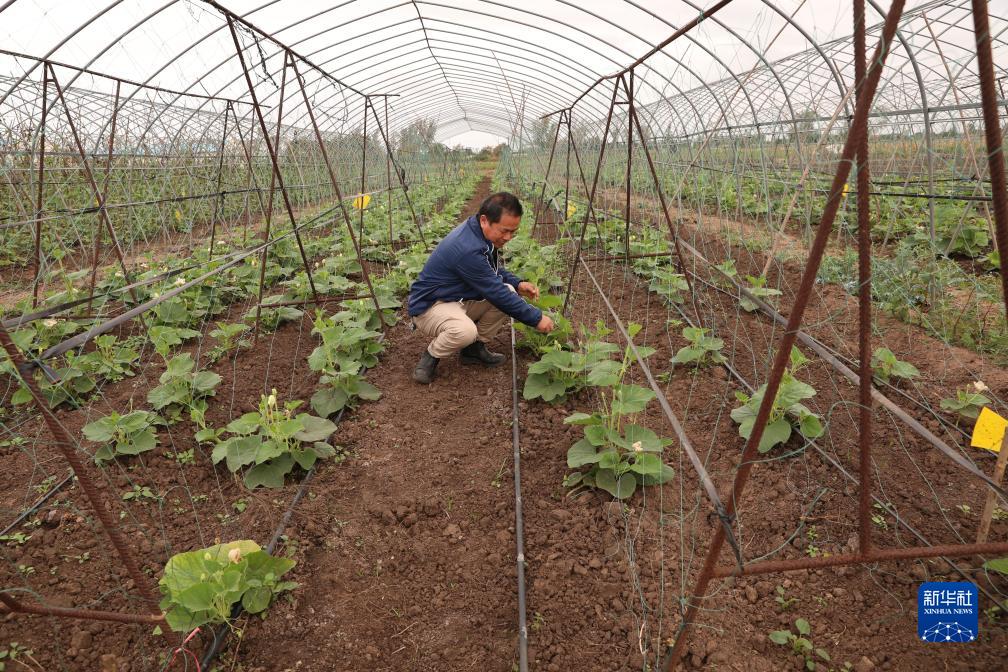 7月25日,在莫桑比克馬普托省博阿內地區,中國技術員頓新洪在中莫農業技術示范中心蔬菜大棚內查看蔬菜。