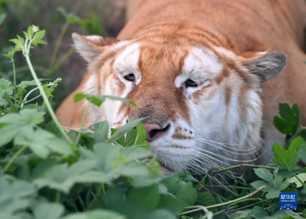 這是在沁陽市和生森林動物樂園拍攝的老虎(7月27日攝)。