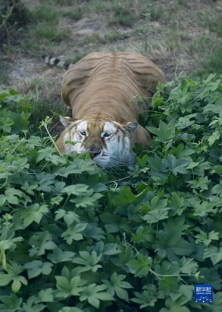 這是在沁陽市和生森林動物樂園拍攝的老虎(7月27日攝)。