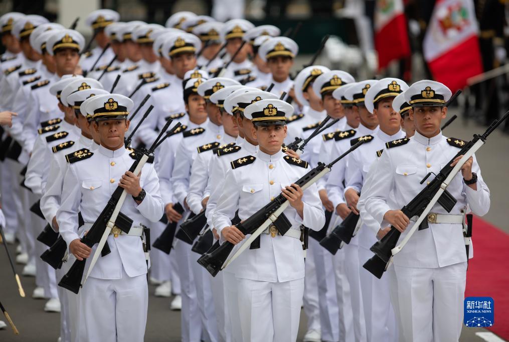 7月28日,秘魯海軍士兵參加在首都利馬舉行的獨立日慶?;顒?。