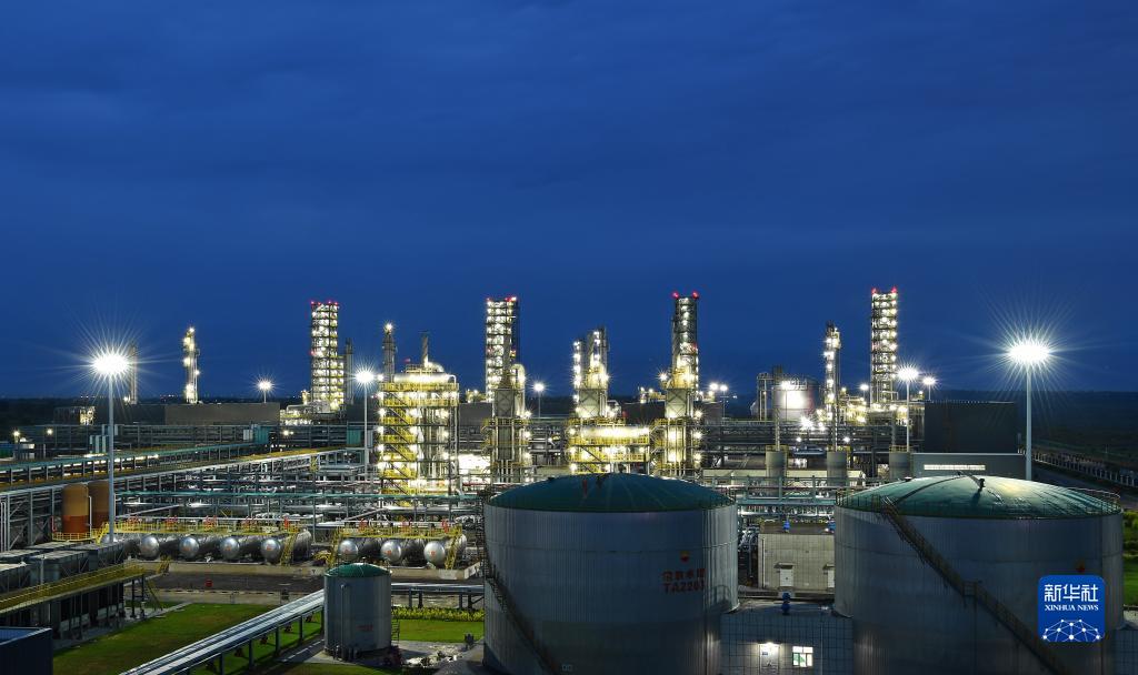 中國石油長慶油田上古天然氣處理總廠夜景(7月27日攝)。