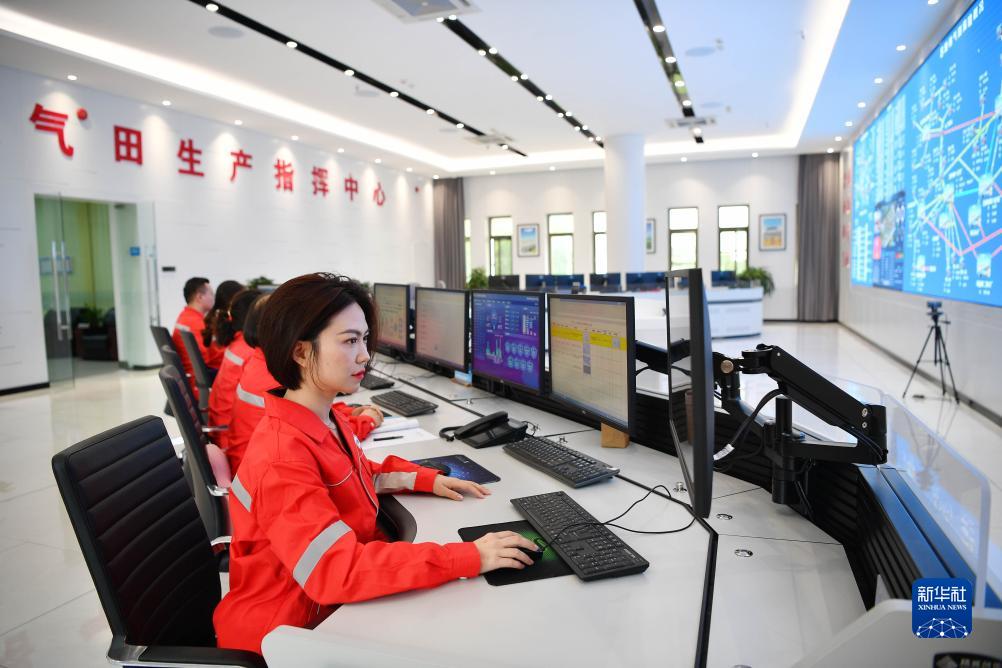 7月27日,技術人員在中國石油長慶油田蘇里格氣田中控室內利用智能化技術平臺進行參數調整優化。