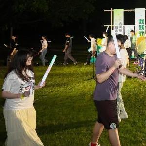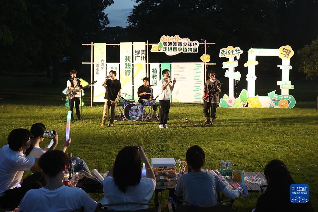 7月28日,在星光音樂派對上,粵港澳三地青少年圍坐在草坪上隨樂而唱。