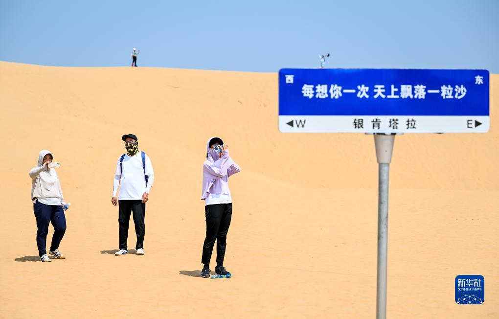 7月29日,游客在鄂爾多斯市達拉特旗境內庫布其沙漠中的銀肯塔拉景區游玩。
