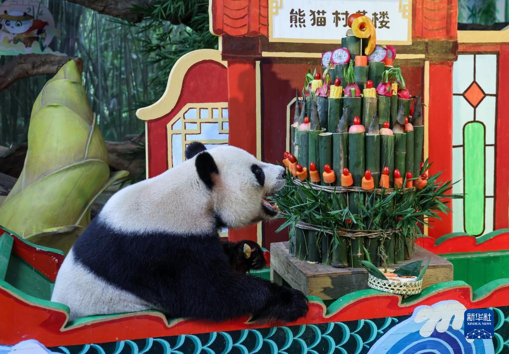 當日,全球唯一的三胞胎大熊貓“萌萌”“帥帥”“酷酷”迎來九周歲生日,三胞胎于2014年7月29日出生于廣州長隆野生動物世界華南大熊貓繁育基地。