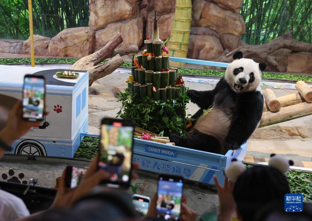 當日,全球唯一的三胞胎大熊貓“萌萌”“帥帥”“酷酷”迎來九周歲生日,三胞胎于2014年7月29日出生于廣州長隆野生動物世界華南大熊貓繁育基地。