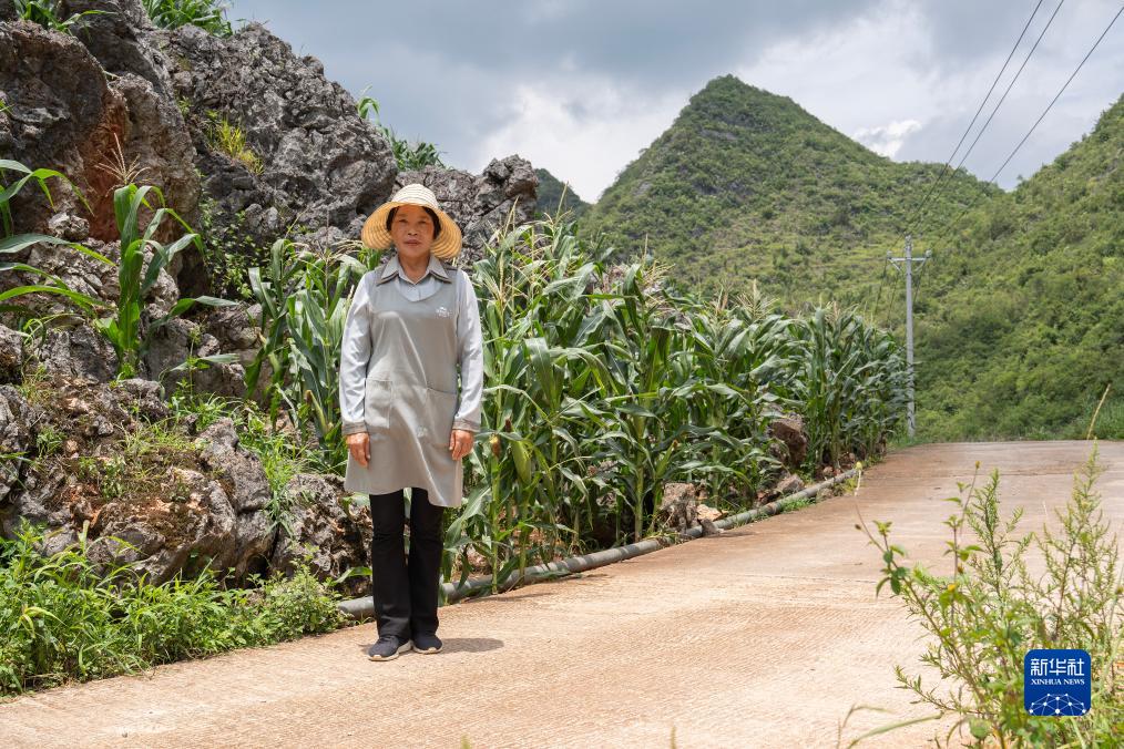謝成芬站在自己和村民一起修好的出村公路上(7月27日攝)。新華社記者 費茂華 攝