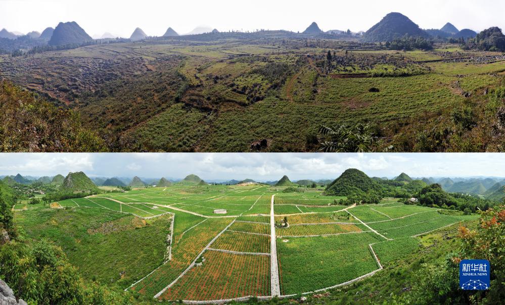 這是一張拼版照片:上圖為2010年西疇縣長箐村中低產田改造前的資料照片(西疇縣融媒體中心供圖);下圖為2011年,西疇縣長箐村中低產田改造后的資料照片(西疇縣融媒體中心供圖)。