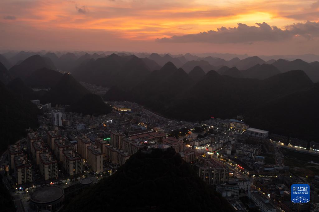 這是夕陽下的西疇縣城一景(無人機照片,7月26日攝)。新華社記者 陳欣波 攝