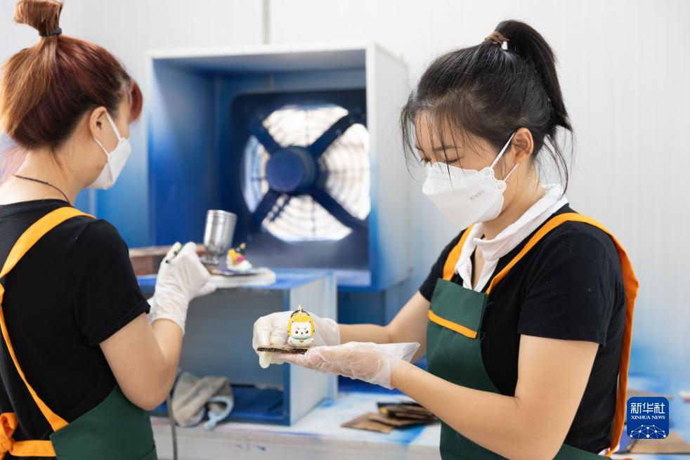 7月27日,工作人員在西疇湯谷文化創意產業園為產品噴漆。新華社記者 呂帥 攝