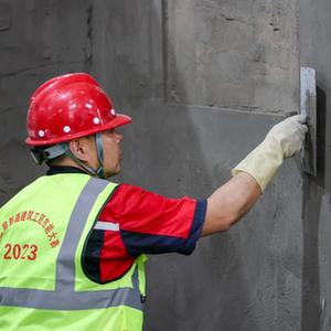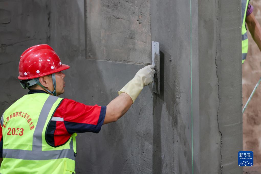7月29日,在第二屆新疆建筑工匠技能大賽決賽現場,參賽選手在進行抹灰工項目競賽。