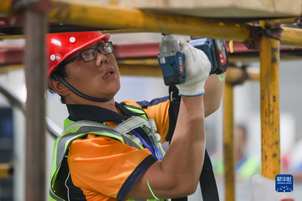 7月29日,在第二屆新疆建筑工匠技能大賽決賽現場,參賽選手在進行模板工項目競賽。