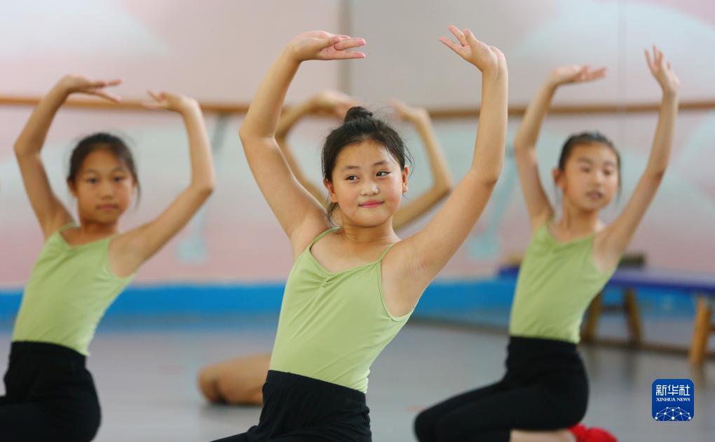 7月29日,在山東省滕州市一家舞蹈培訓機構,孩子們學習舞蹈。