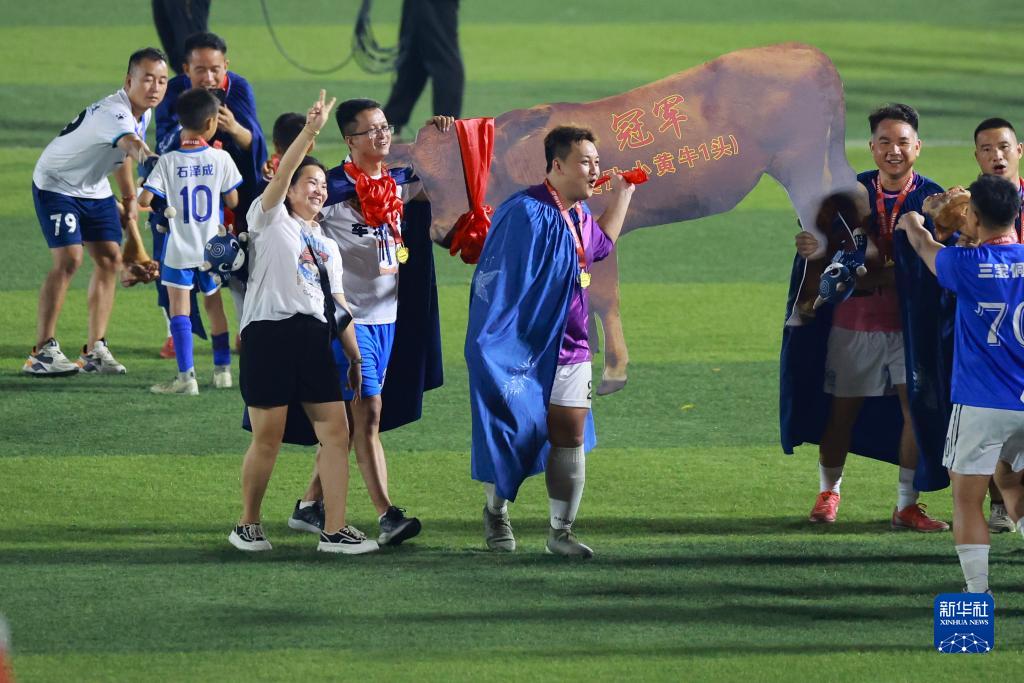 7月29日,獲得冠軍的車江一村隊領取冠軍獎品。新華社記者 劉續 攝