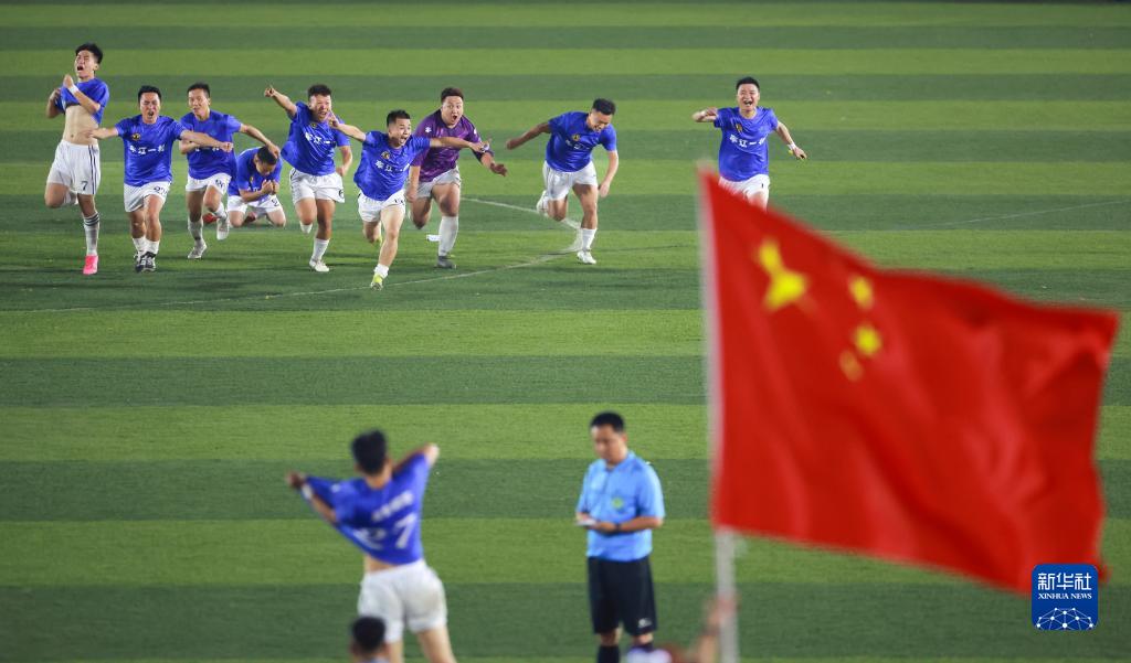7月29日,獲得冠軍的車江一村隊球員在奪冠后慶祝。新華社記者 劉續 攝