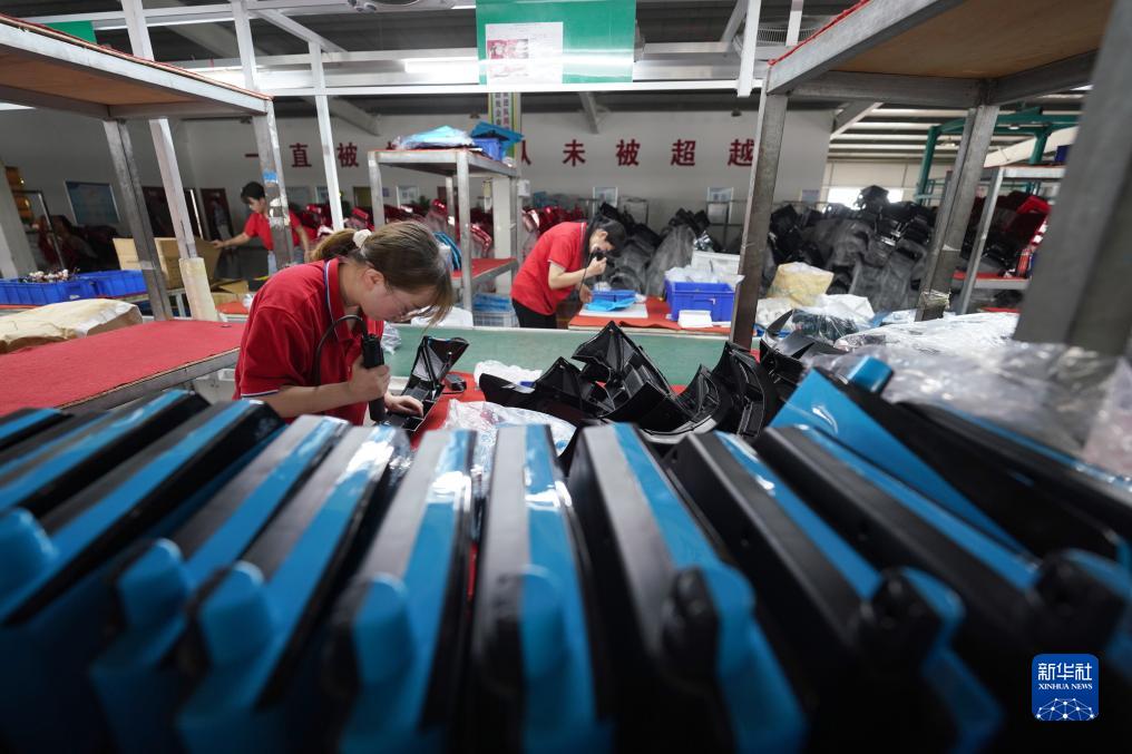7月29日,河北省平鄉縣一家童車生產企業的員工在組裝電動童車零部件。