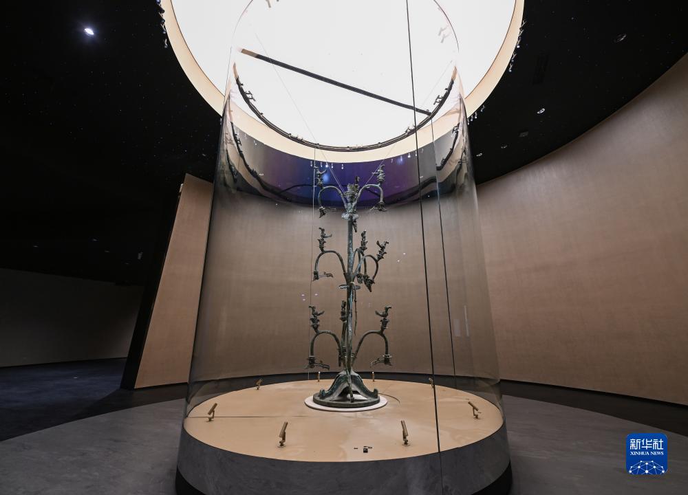 這是7月26日在三星堆博物館新館拍攝的重新展出的Ⅰ號大型銅神樹。