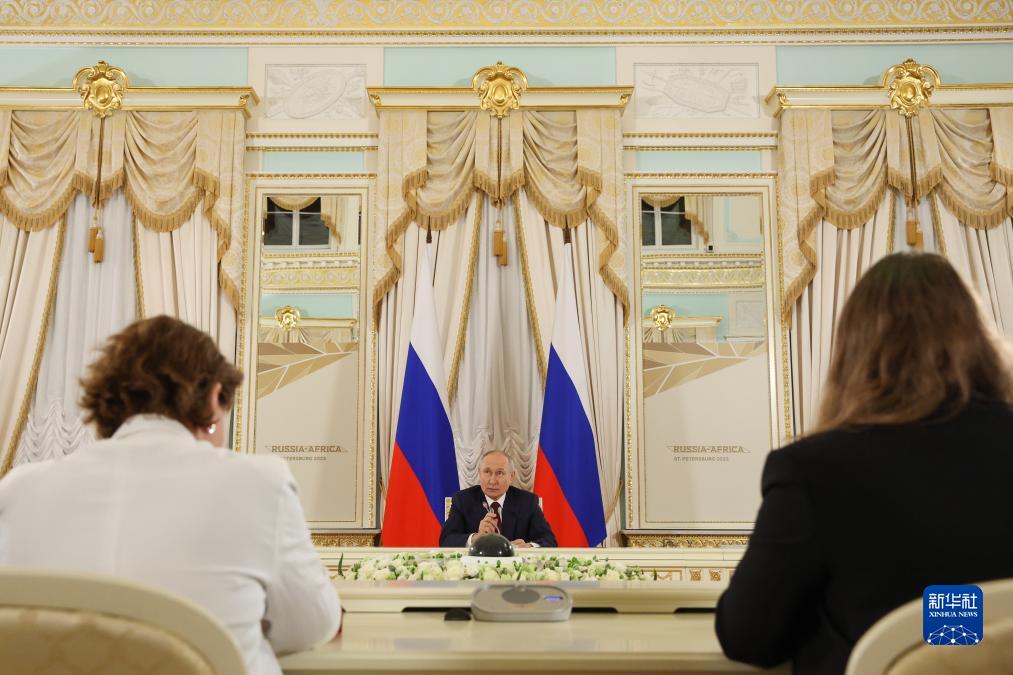 7月29日,俄羅斯總統普京在圣彼得堡出席第二屆俄羅斯-非洲峰會會后新聞發布會。