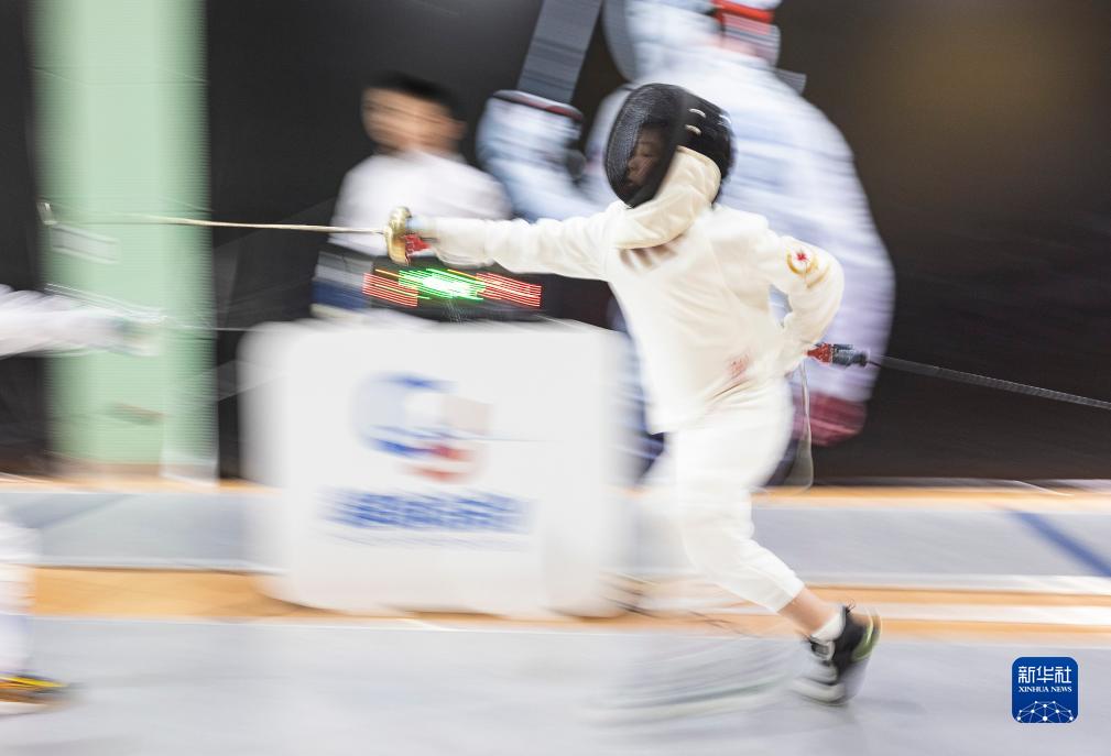 7月30日,在浙江省湖州奧體中心超越擊劍館,小朋友在進行擊劍訓練。