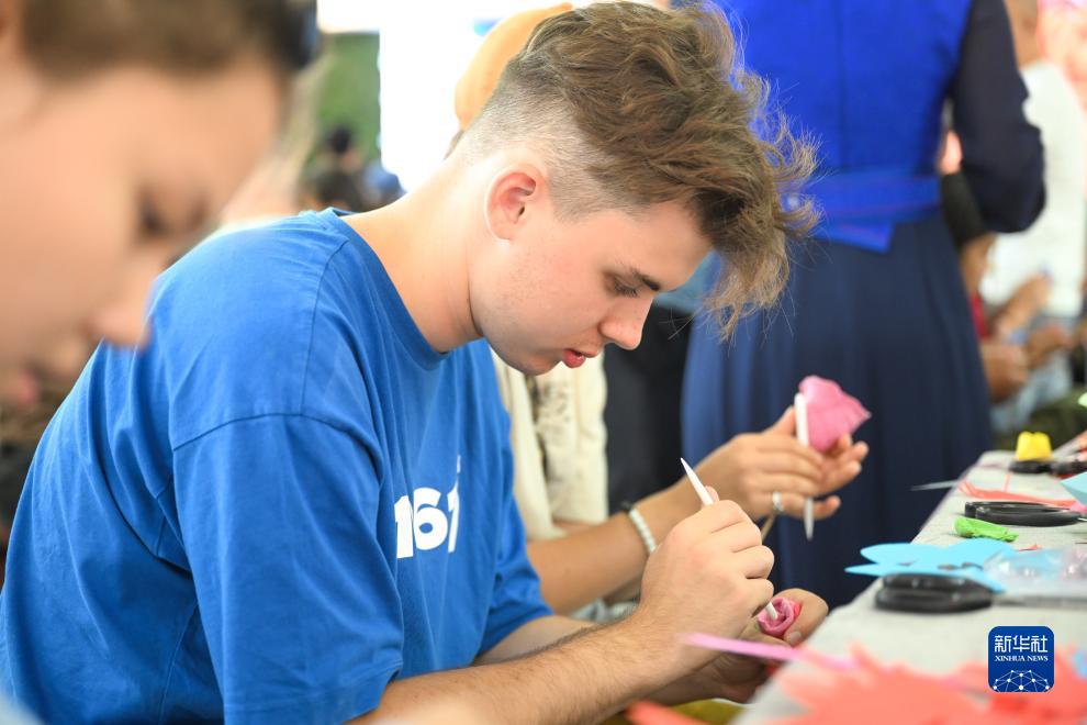 7月30日,來自俄羅斯的學生在活動中制作面塑。