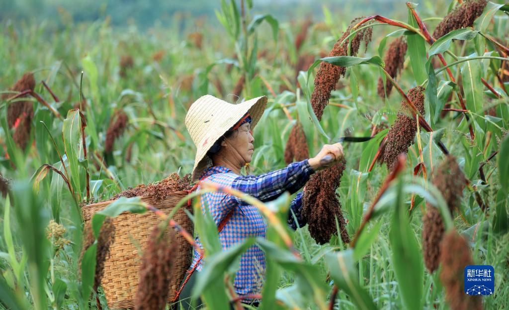盛夏時節,四川省瀘州市高粱進入收獲季,村民趁晴好日子抓緊搶收。