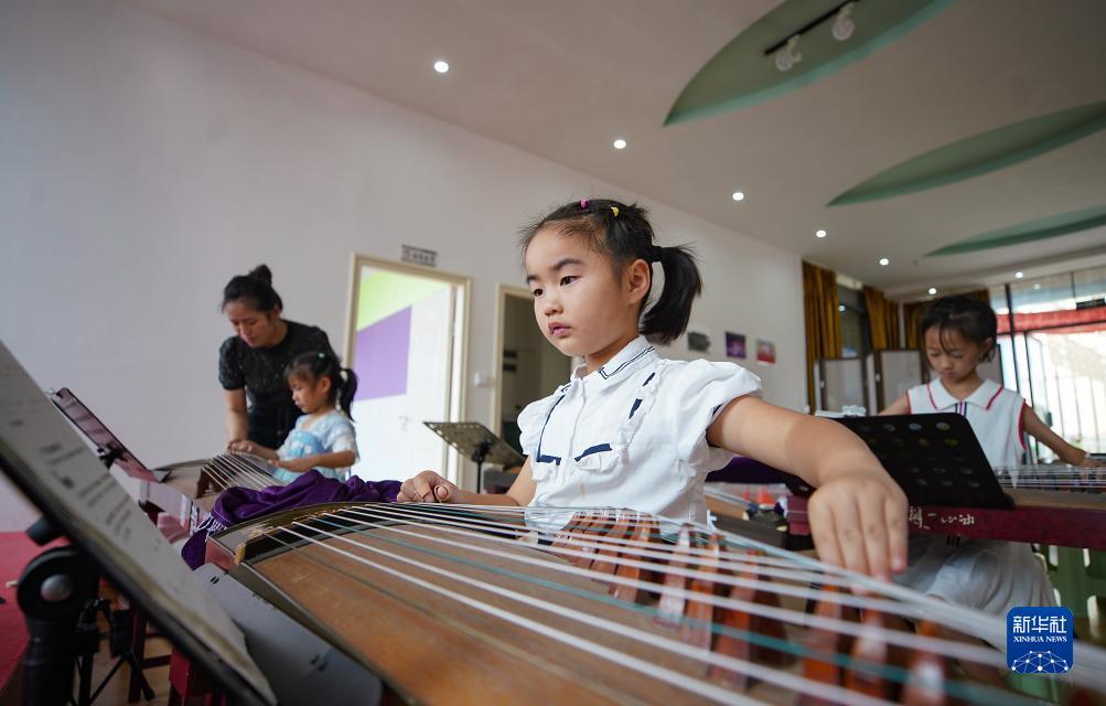 7月30日,孩子們在貴州省黔東南苗族侗族自治州丹寨縣一家音樂培訓機構學習古箏。