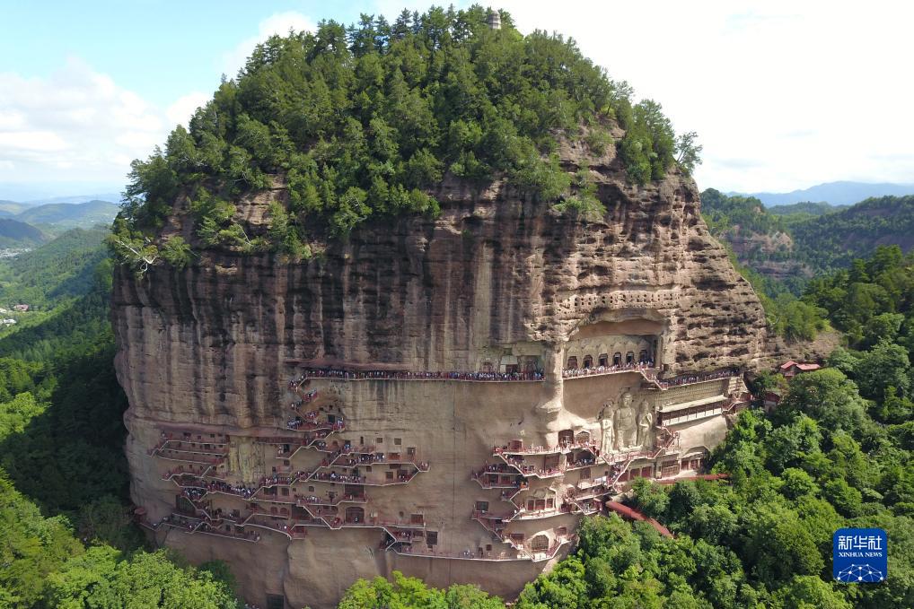 進入暑期,地處甘肅省天水市麥積區的麥積山石窟迎來旅游高峰。為保障游客與文物安全,麥積山石窟藝術研究所優化參觀路線,從7月29日起至8月25日間開啟路線陡峭的應急1號線和路線平緩的應急2號線兩條參觀線路供游客選擇,以此提升游客體驗。麥積山石窟是“中國四大石窟”之一,因其形似麥垛而得名,也是世界文化遺產“絲綢之路:長安-天山廊道的路網”的遺產點之一。