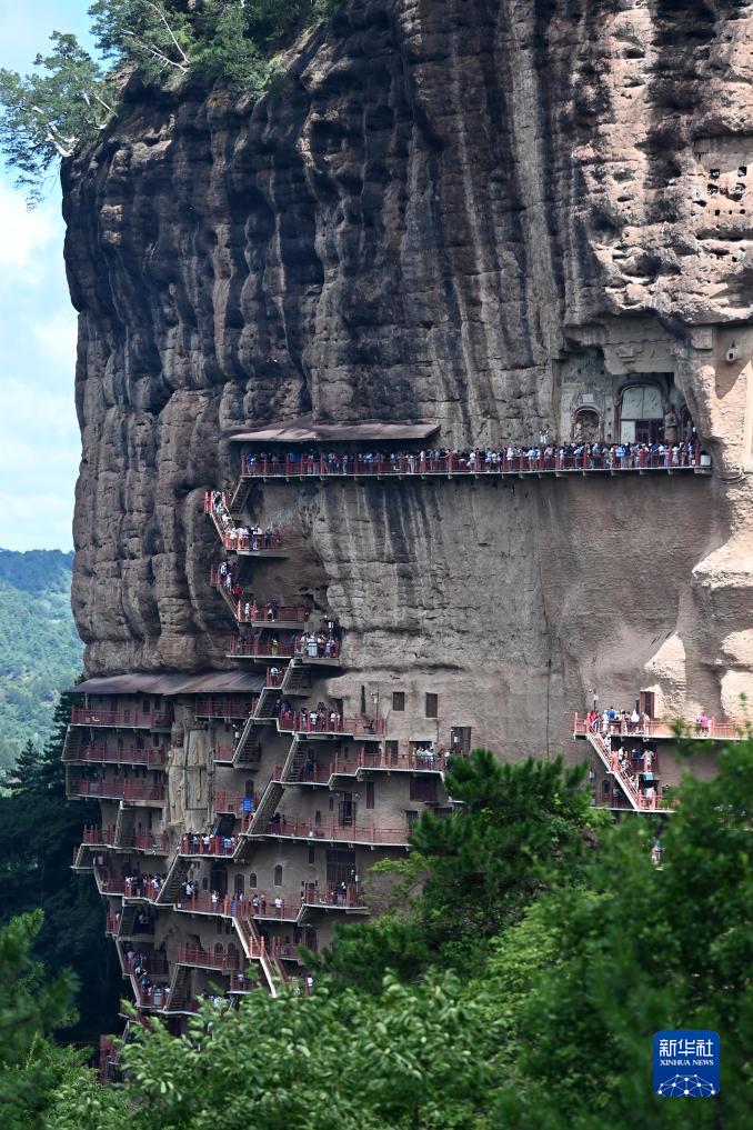進入暑期,地處甘肅省天水市麥積區的麥積山石窟迎來旅游高峰。為保障游客與文物安全,麥積山石窟藝術研究所優化參觀路線,從7月29日起至8月25日間開啟路線陡峭的應急1號線和路線平緩的應急2號線兩條參觀線路供游客選擇,以此提升游客體驗。麥積山石窟是“中國四大石窟”之一,因其形似麥垛而得名,也是世界文化遺產“絲綢之路:長安-天山廊道的路網”的遺產點之一。