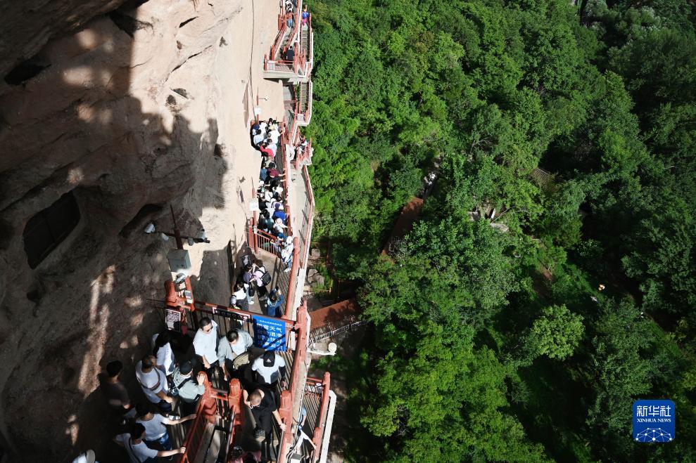 進入暑期,地處甘肅省天水市麥積區的麥積山石窟迎來旅游高峰。為保障游客與文物安全,麥積山石窟藝術研究所優化參觀路線,從7月29日起至8月25日間開啟路線陡峭的應急1號線和路線平緩的應急2號線兩條參觀線路供游客選擇,以此提升游客體驗。麥積山石窟是“中國四大石窟”之一,因其形似麥垛而得名,也是世界文化遺產“絲綢之路:長安-天山廊道的路網”的遺產點之一。