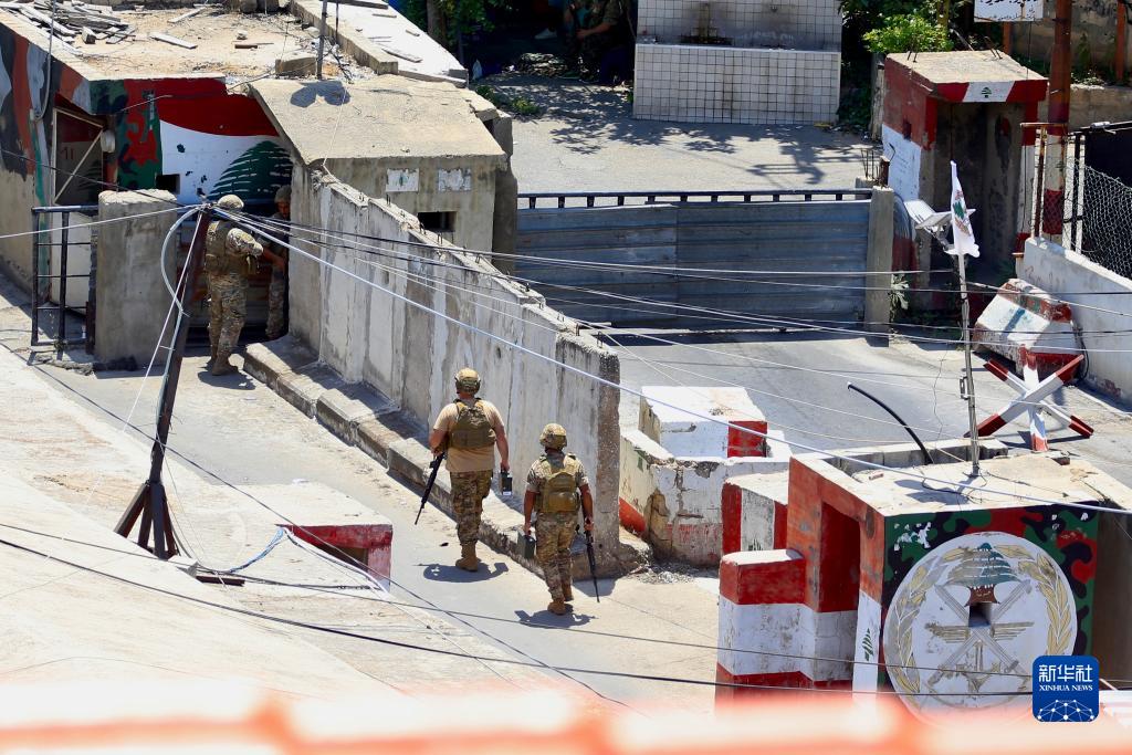 7月30日,黎巴嫩士兵在西頓市附近的艾因·哈勒瓦難民營出入口警戒。