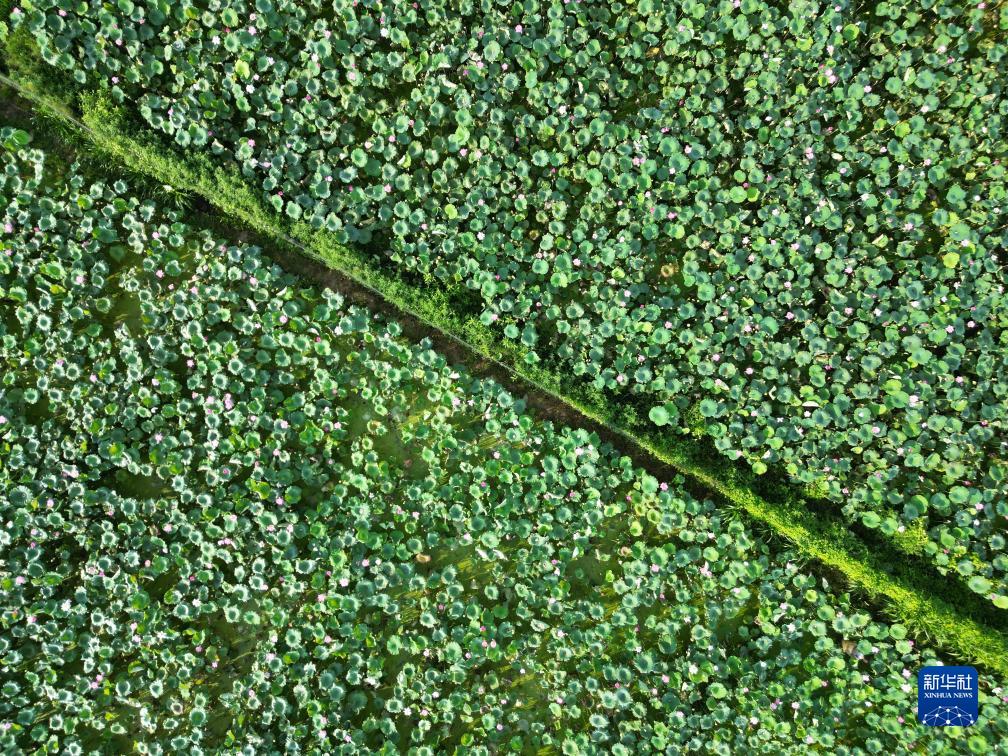 7月31日在湖南省湘潭縣花石鎮羅漢村拍攝的湘蓮種植基地(無人機照片)。