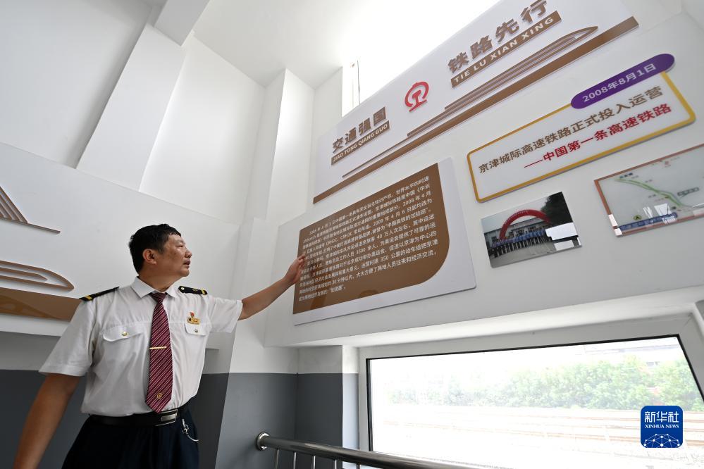 徐偉在天津機務段動車組運用車間查看京津城際歷史介紹(7月26日攝)。