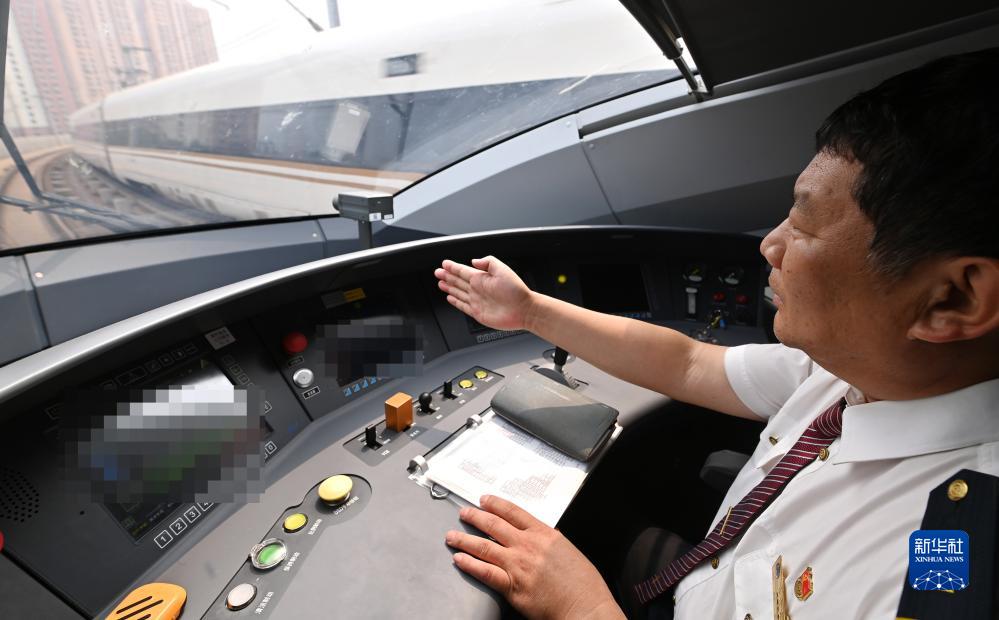 徐偉在駕駛京津城際列車(7月26日攝)。
