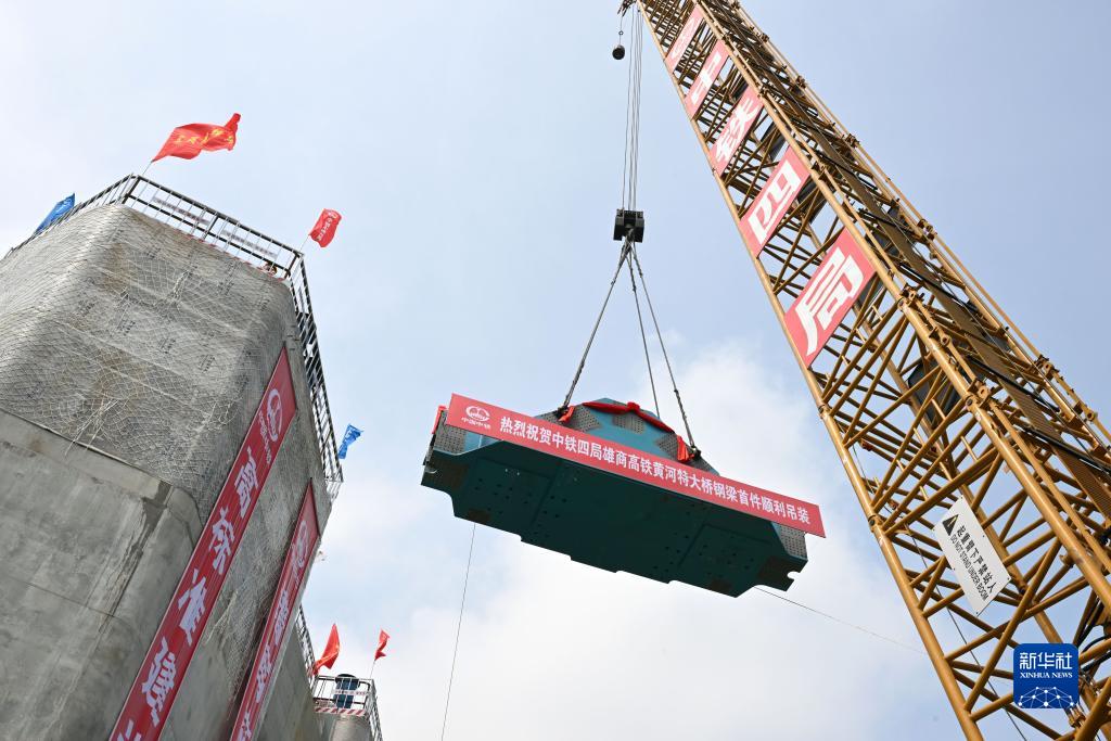 當日,由中鐵四局集團承建的雄(安)商(丘)高鐵跨黃河特大橋主橋工程正式進入鋼梁架設階段。雄商高鐵黃河特大橋主橋在河南省臺前縣和山東省梁山縣間跨越黃河,主橋總長1600米。