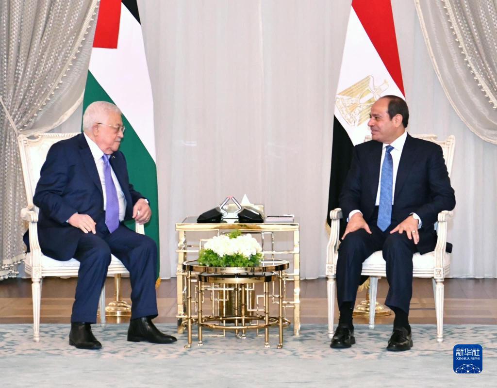 7月31日,埃及總統塞西(右)在埃及新阿拉曼市會見到訪的巴勒斯坦總統、巴勒斯坦民族解放運動(法塔赫)主席阿巴斯。