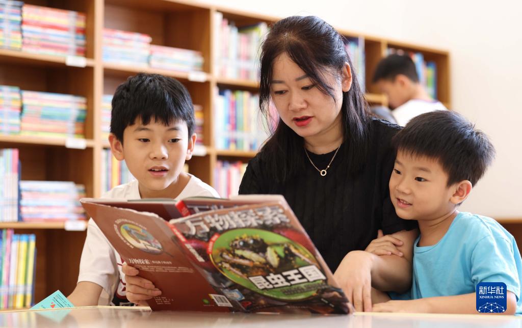 8月1日,學生和家長在貴州省銅仁市玉屏侗族自治縣圖書館閱讀。