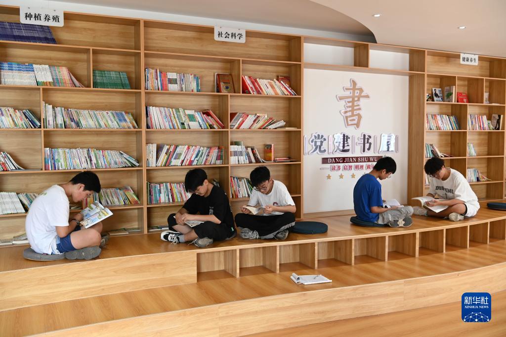 7月31日,在河南省沁陽市西萬鎮校尉營村黨建書屋,幾名學生在閱讀。