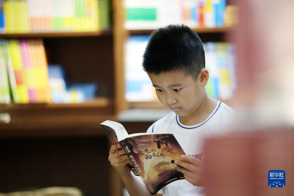 8月1日,一名學生在山東省臨沂市郯城縣新華書店閱讀。