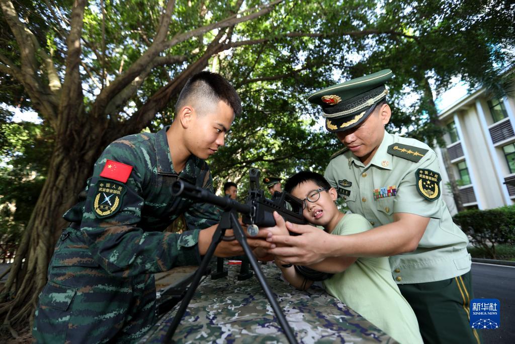 武警海南總隊三亞支隊開展“軍嫂萌娃進軍營”主題活動,邀請百余名軍屬走進營區“零距離”體驗(7月30日攝)。